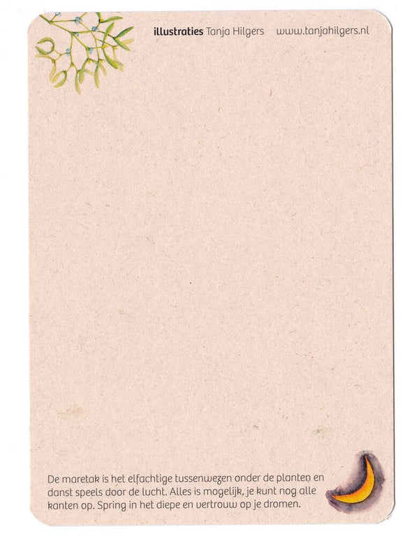 De maretak is het elfachtige tussenwezen onder de plantenen danst speels door de lucht. Alles is mogelijk, je kunt alle kanten op. Spring in het diepe en vertrouw op je dromen.
