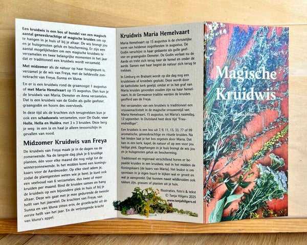 Handige opvouwbare overzichtskaart voor het maken van een magische kruidwis met midzomer of Maria Hemelvaart.