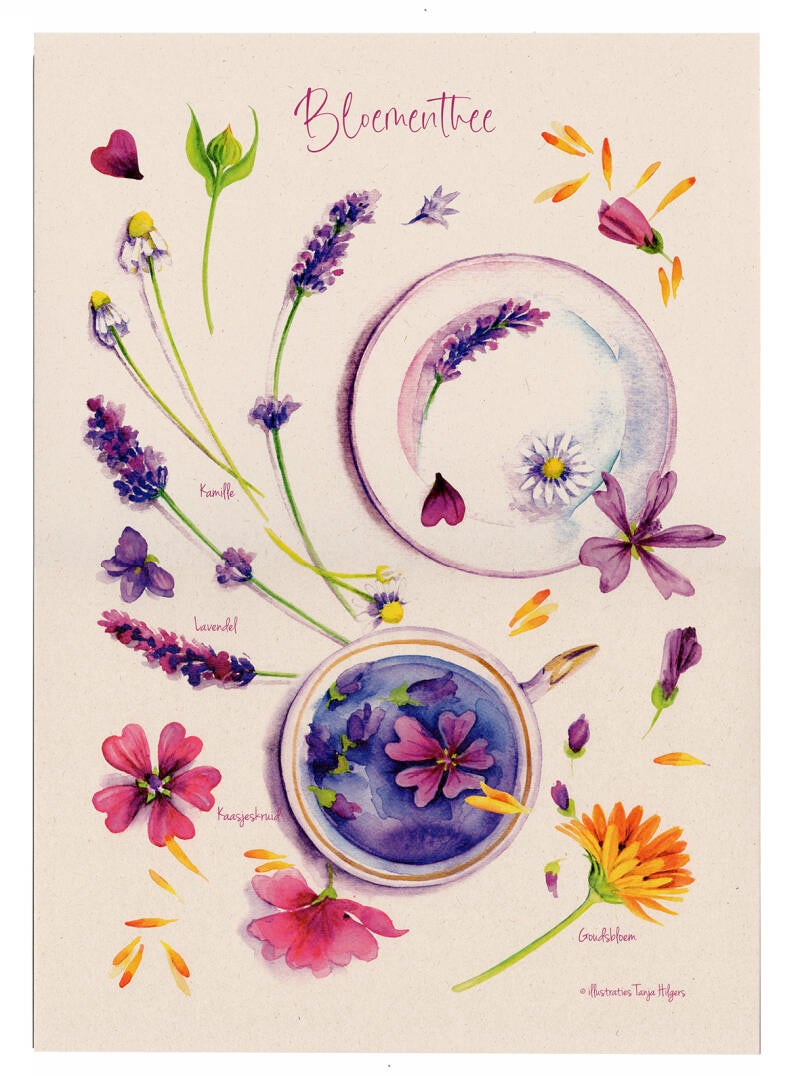 2 Poster 25x35 met prachtige illustratie bloementhee
