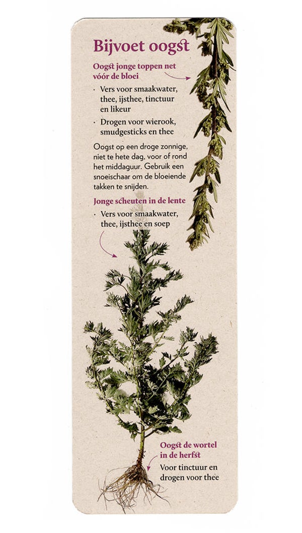 Handige boekenlegger met de illustratie van Vrouwe Bijvoet en informatie over de oogst van Bijvoet.
