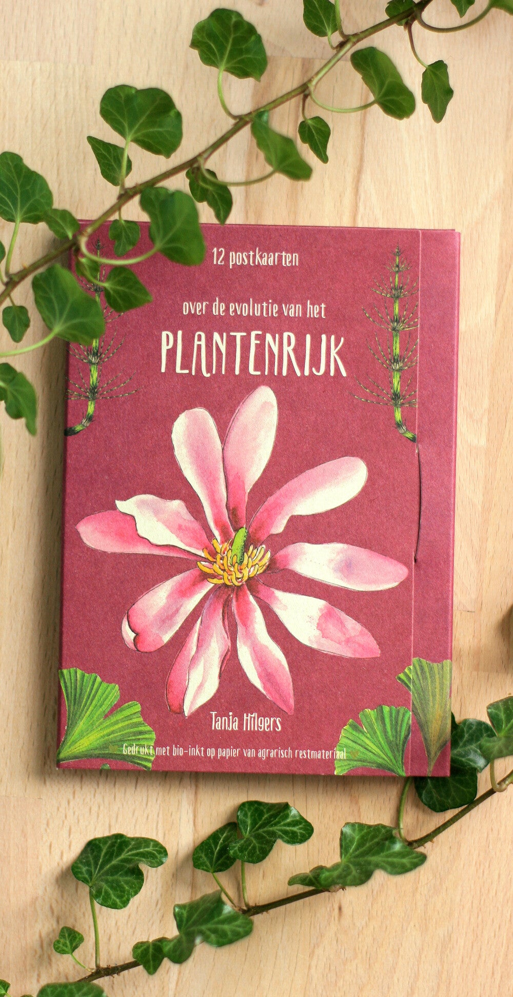 De kaarten en het mapje zijn duurzaam gedrukt met bio- inkt op papier van agrarisch restmateriaal (zonder kap van bomen dus!). Ze zijn zelfs komposteerbaar, maar dat zou zonde zijn 💚