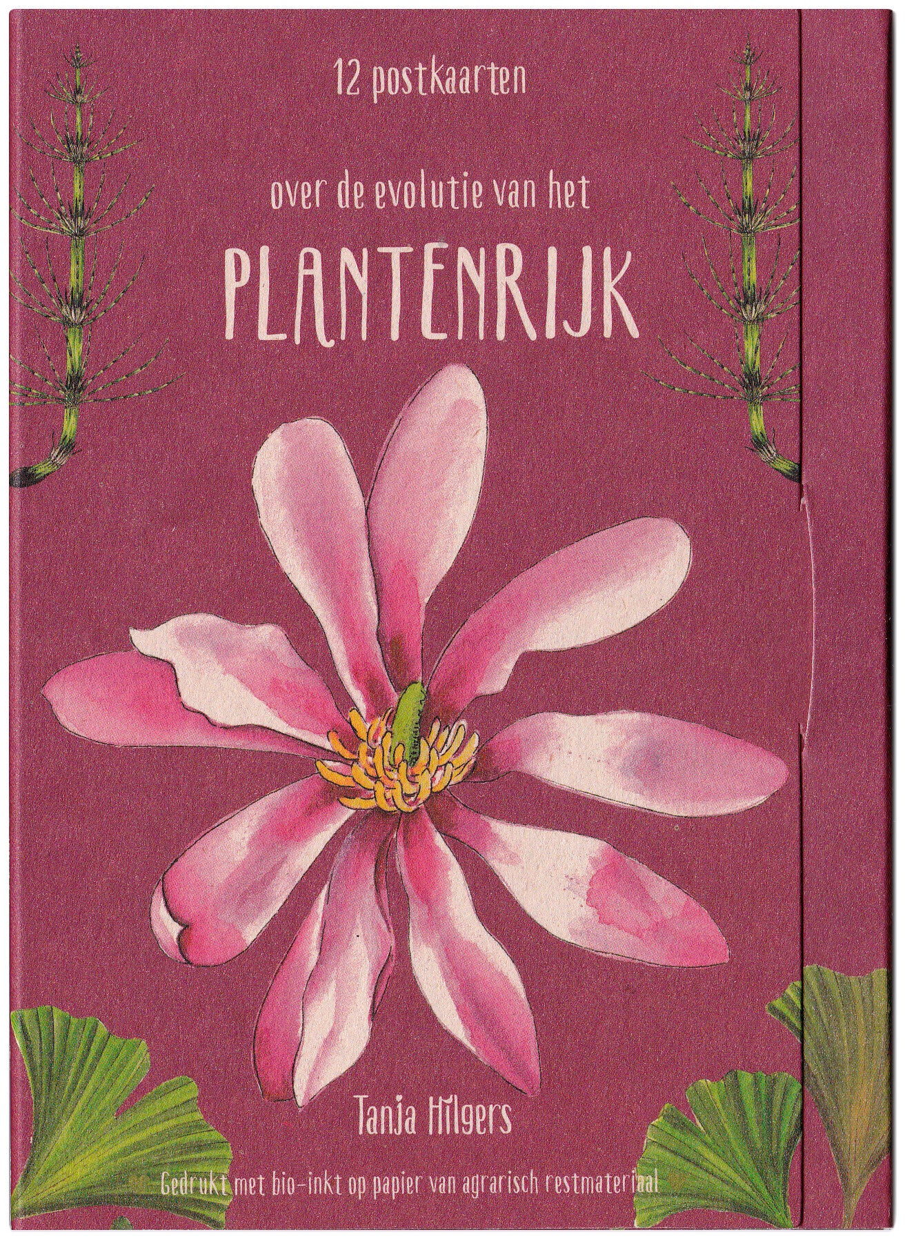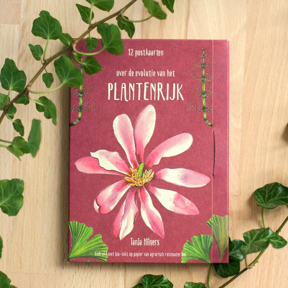 Kleurrijke serie postkarten met botanische illustraties en leuke weetjes op de achterkant over de stappen in de evolutie.