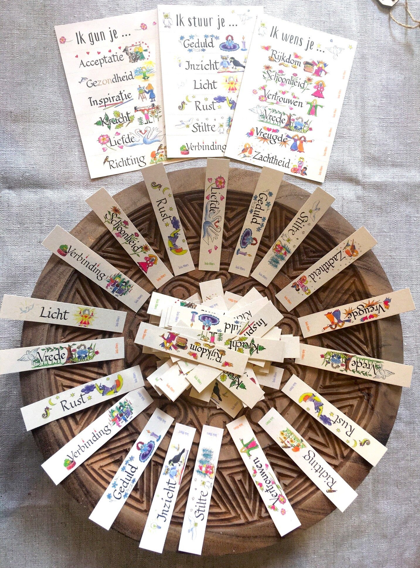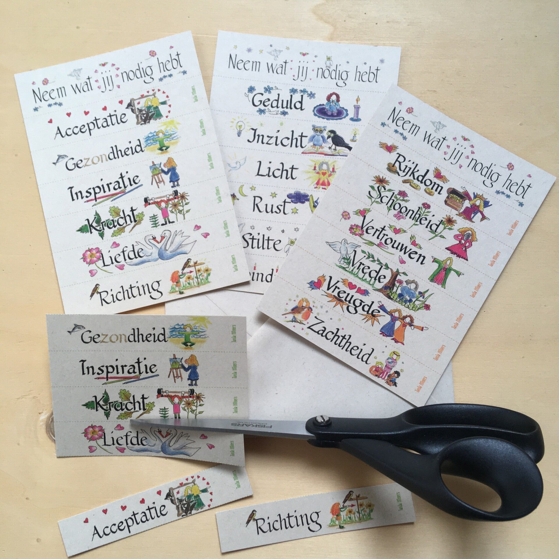 De ontvanger kan afknippen wat zij of hij het hardst nodig heeft of het liefste wil. De briefjes zijn ook leuk op een altaar en als versiering om op te hangen.